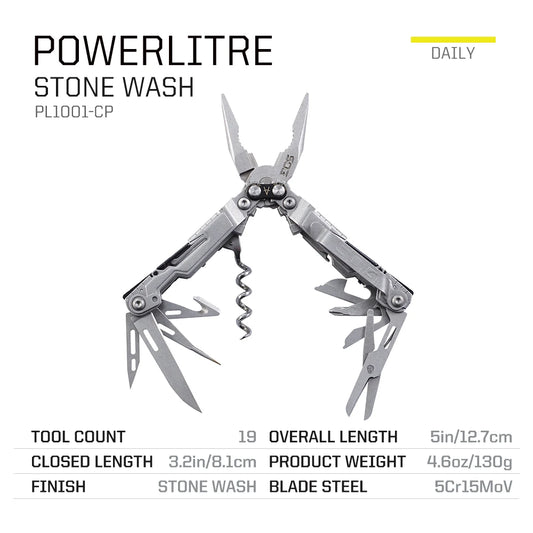 SOG PowerLitre 19-in-1 EDC Multi-Tool – Folding Pliers, Knife & Scissors Portable Outdoor Tool