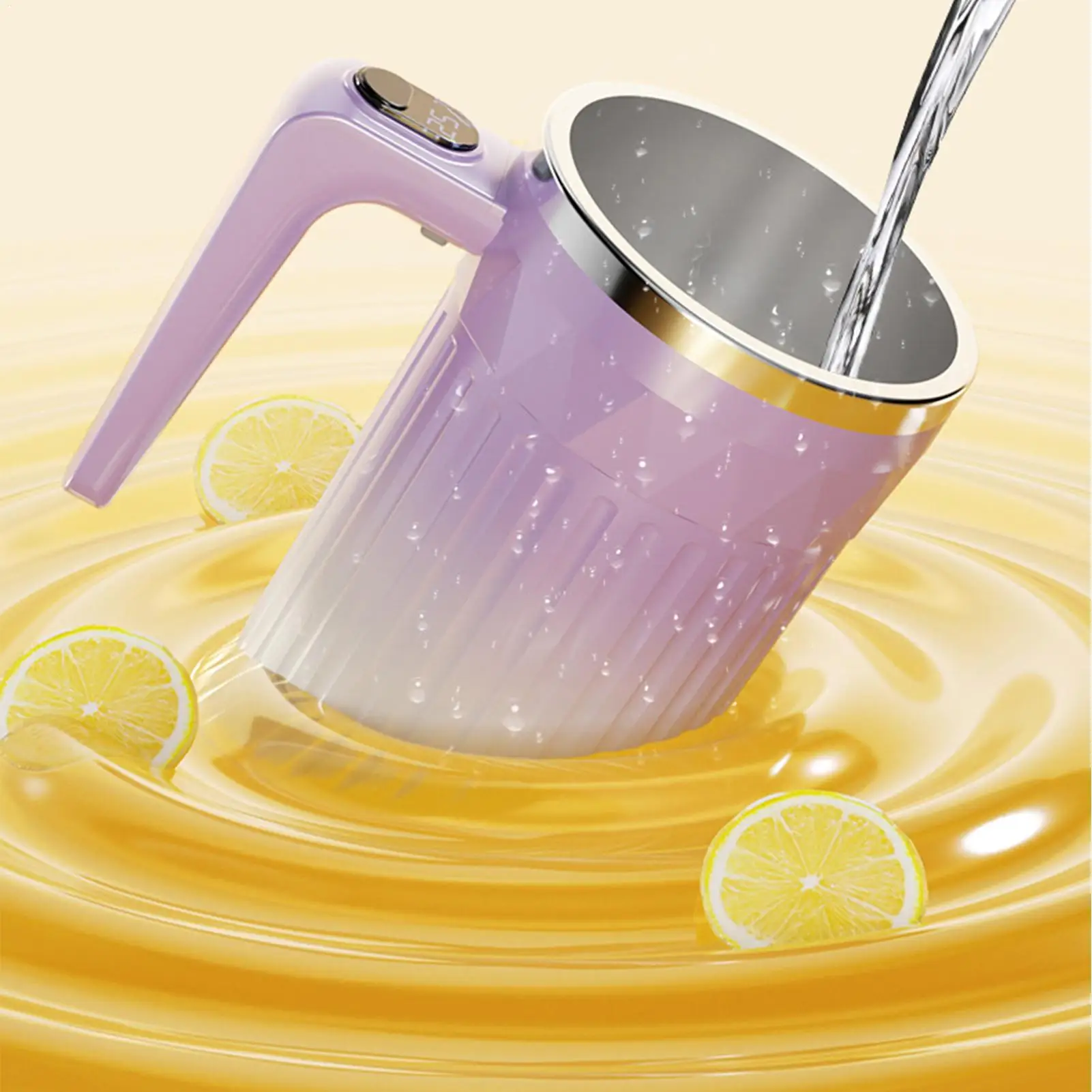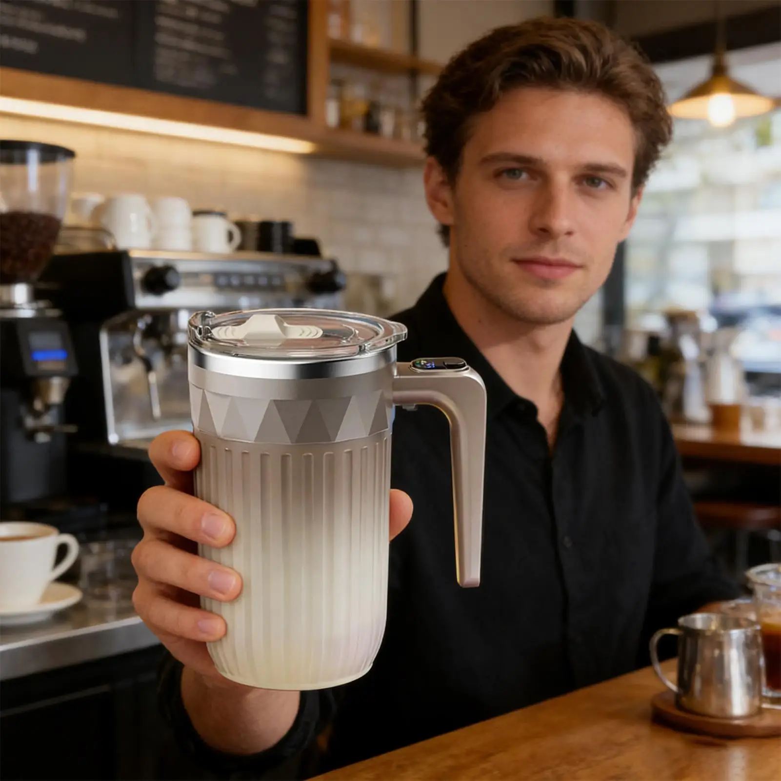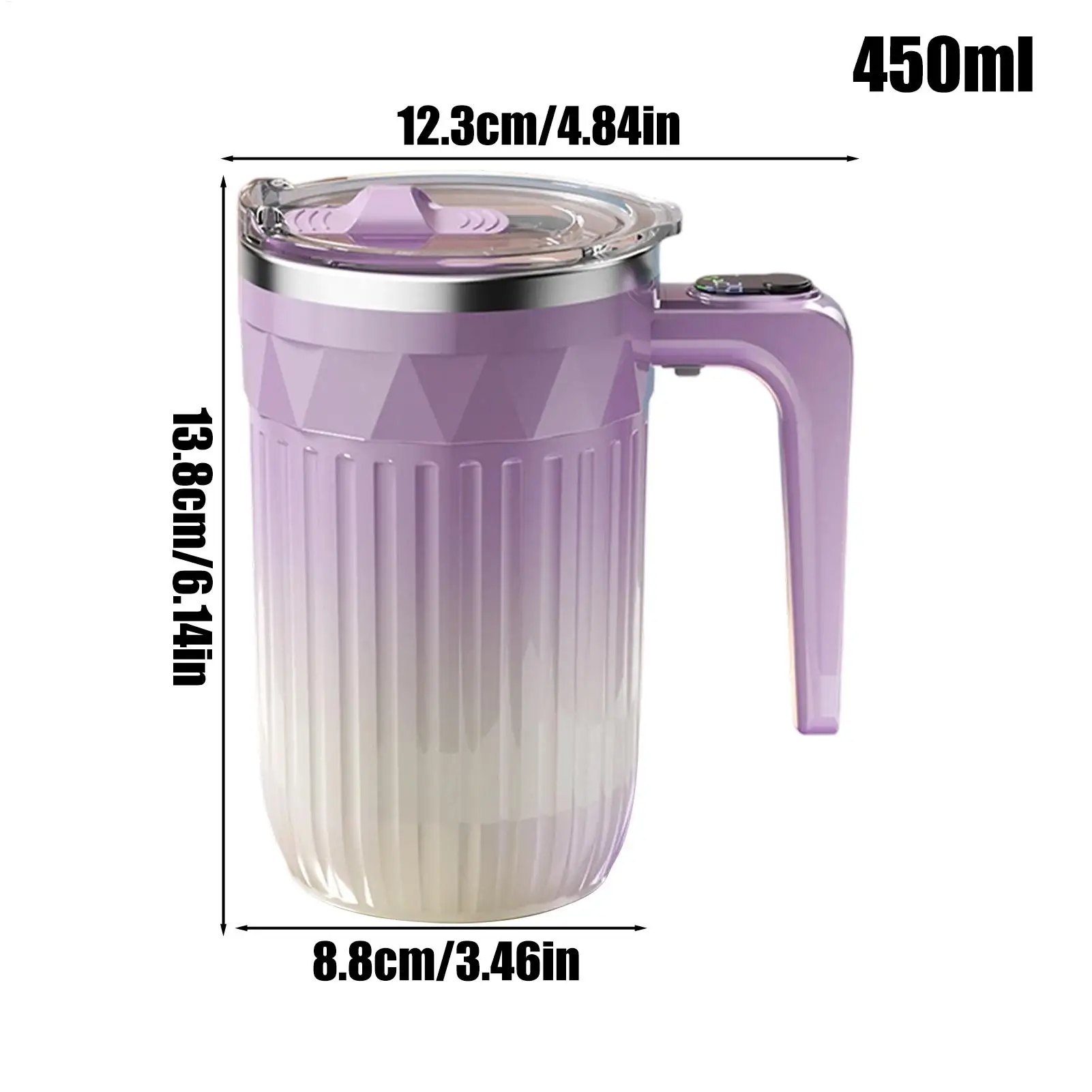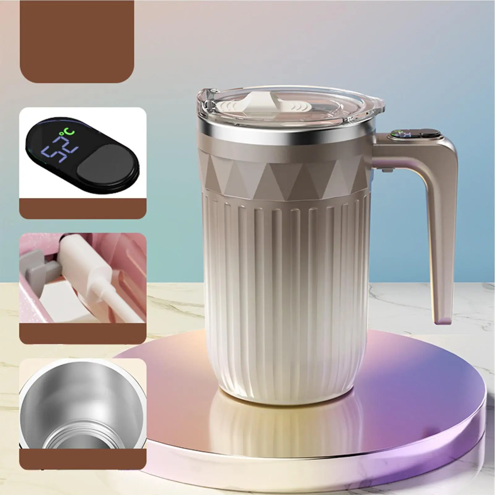 Experience effortless beverage preparation with the magnetic stirring coffee mug, crafted from long-lasting stainless steel. This rechargeable electric mixer cup features advanced heating technology and a convenient temperature display, ensuring your drink is always at the ideal warmth. With a 450ml capacity and secure lid, this mug is perfect for stirring tea, cocoa, coffee, chocolate, and other beverages effortlessly. Designed for versatility, it is an excellent companion for office, home, kitchen, cafe, or travel use, making it a thoughtful gift for Christmas, birthdays, or any special occasion. Enhance your drinking experience with this innovative magnetic stirring coffee mug, designed to simplify and improve your daily routine while accommodating a variety of drinks with ease and precision.