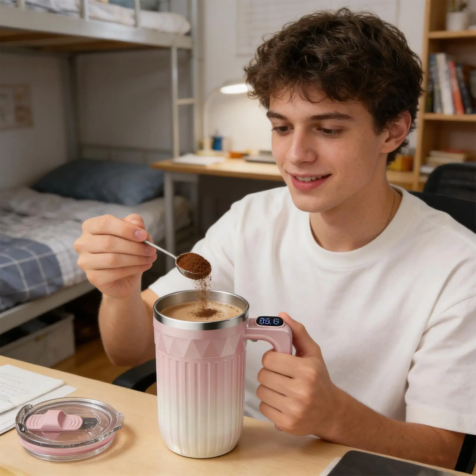 1.Smart Stirring: This self stirring coffee mug enhances user experience by seamlessly blending powders and smoothing liquids through an innovative detachable magnetic stirring feature, perfect for busy mornings or office use where efficiency matters
