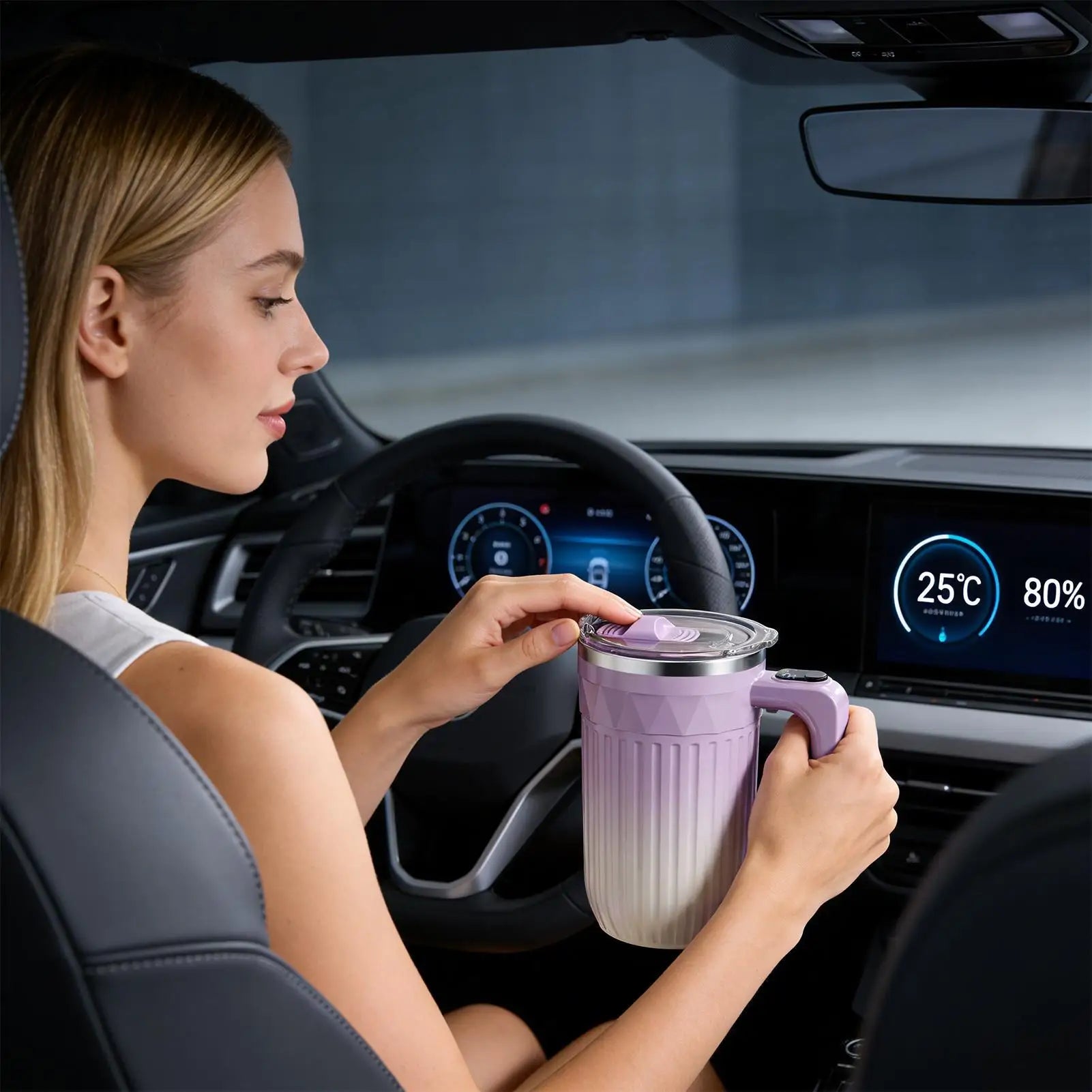 2.Convenient Heat Monitoring: This self stirring mug is equipped with a built-in temperature display, enabling users to check their beverage's warmth easily, enhancing safety and enjoyment whether at work or on outdoor adventures
