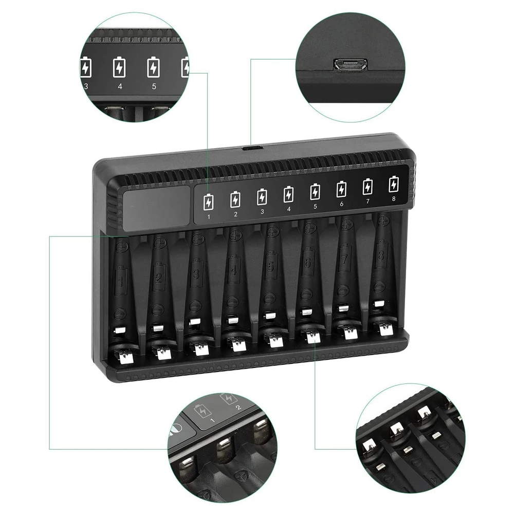 8 Slot Smart Battery Charger LED Display for AA/AAA NiMH Rechargeable Batteries