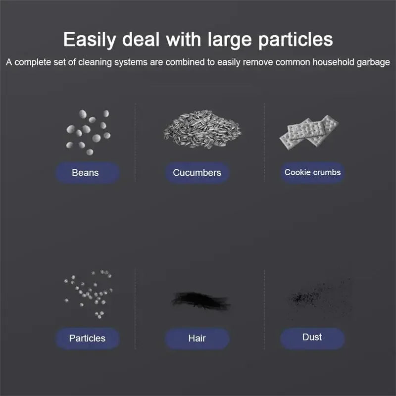 8.Product Function: With a suction force of 1200 Pa, it can easily absorb dust, paper scraps, hair, melon seed shells and other common garbage. The large mop is designed to efficiently absorb water and decontaminate, cleaning more areas at a time.