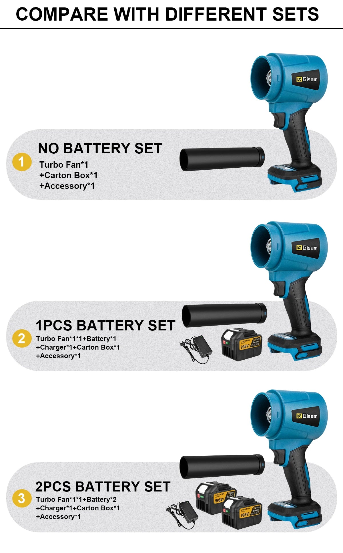 Gisam 300000RPM Brushless Electric Turbo Blower Jet Fan – 400m/s Handheld Air Blower for Dust Cleaning & Leaf Blowing, Compatible with Makita 18V Battery