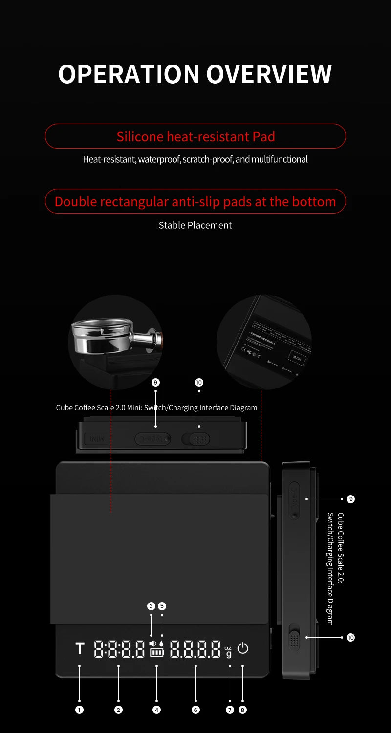MHW-3BOMBER Digital Coffee Scale – High-Precision Rechargeable Espresso Kitchen Scale