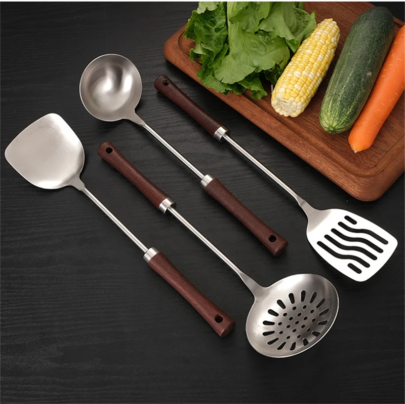 Home Wooden Handle Kitchenware Cooking Utensils Stainless Steel Spatula Frying Shovel Soup Spoon Colander Kitchen Accessories