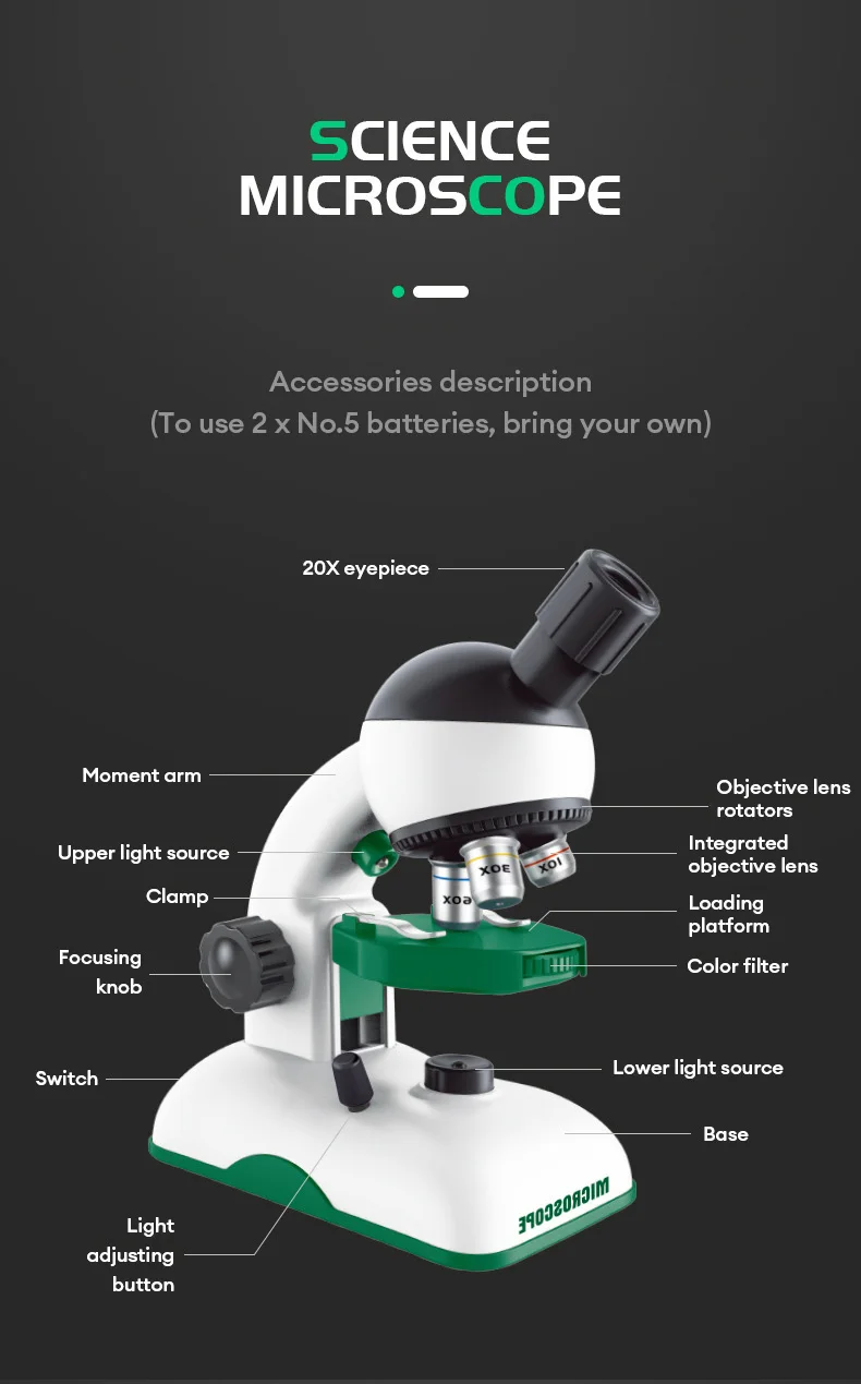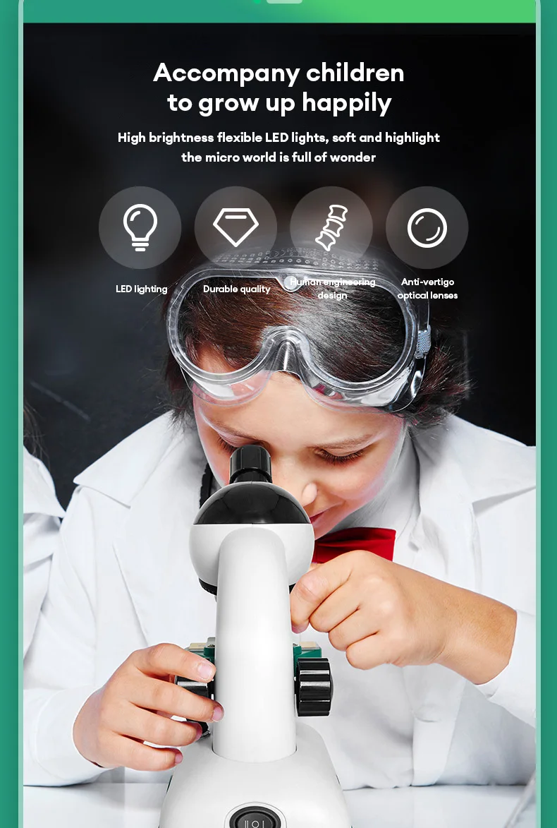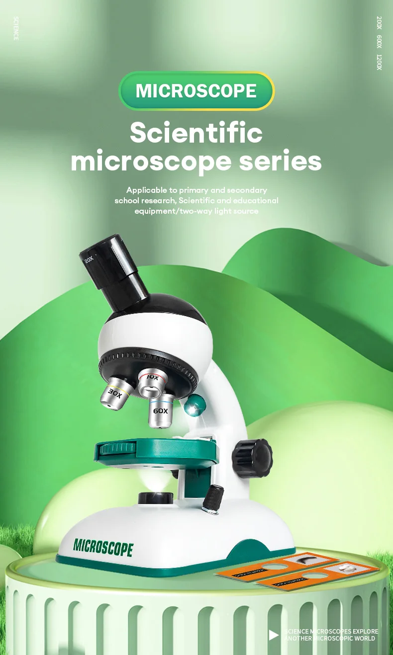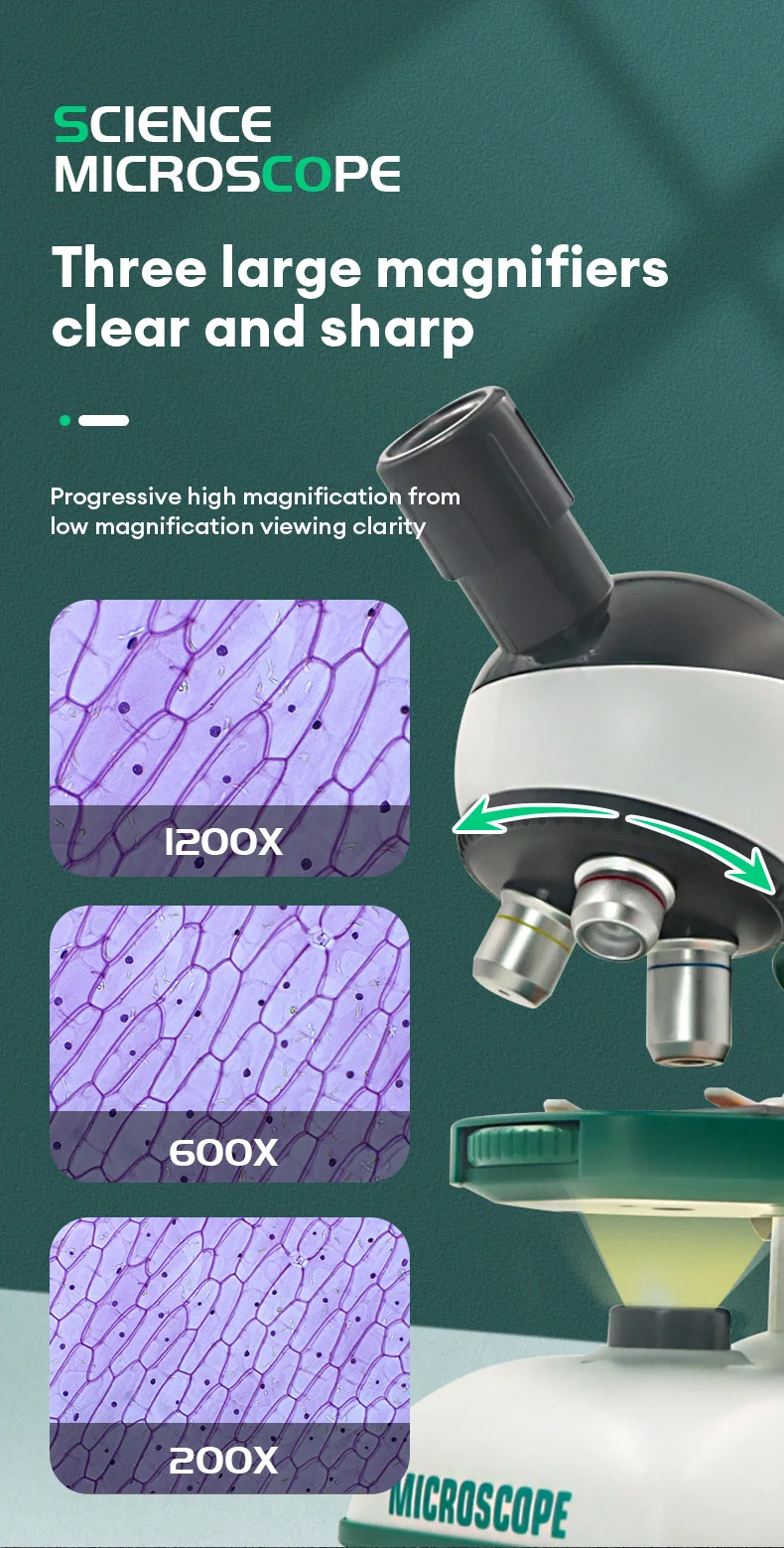 Kids Microscope Science Kit 200X 600X 1200X | LED Biological Experiment Lab with Slides