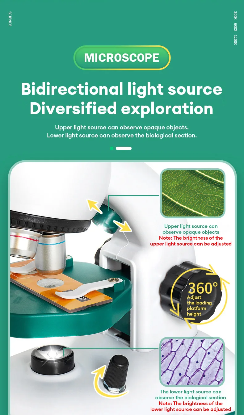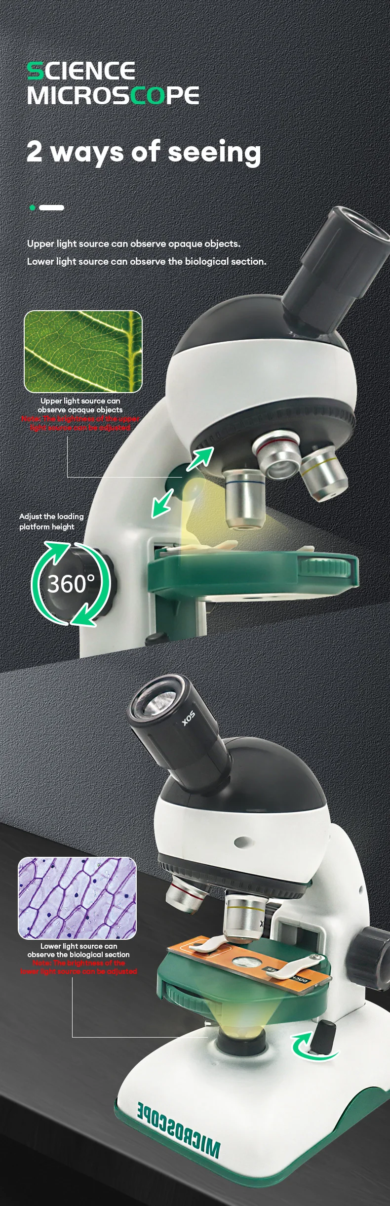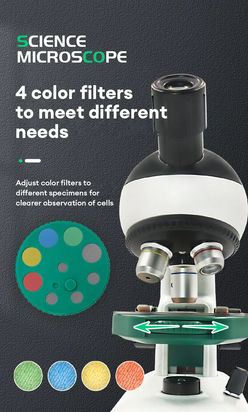 Kids Microscope Science Kit 200X 600X 1200X | LED Biological Experiment Lab with Slides