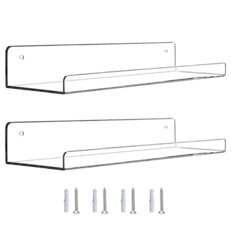 Add a touch of modern to any room with these transparent floating shelves.Perfect for organizing items in your bathroom, living room, kitchen, or entryway.