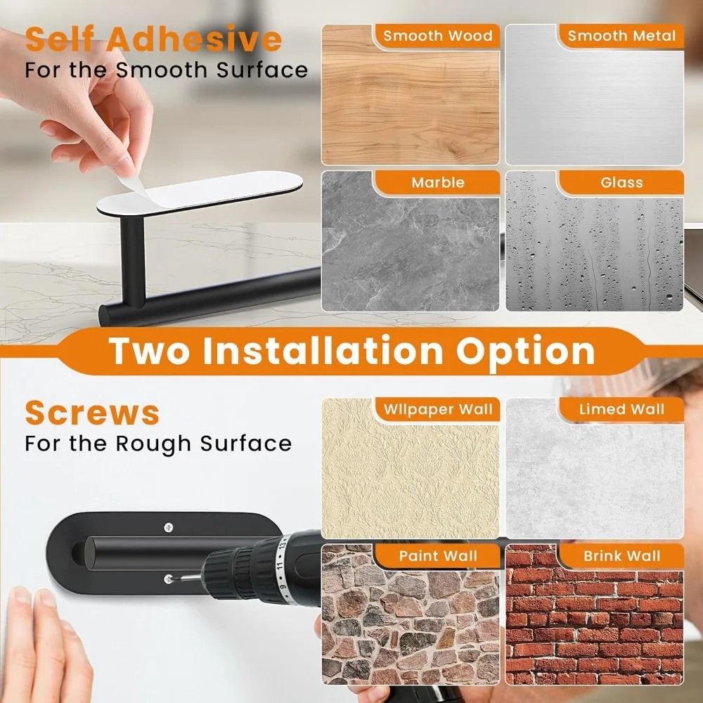 【Two fixed methods】1.double-sided tape fixing (No Drilling); 2.Secure with screws(free screw accessories).