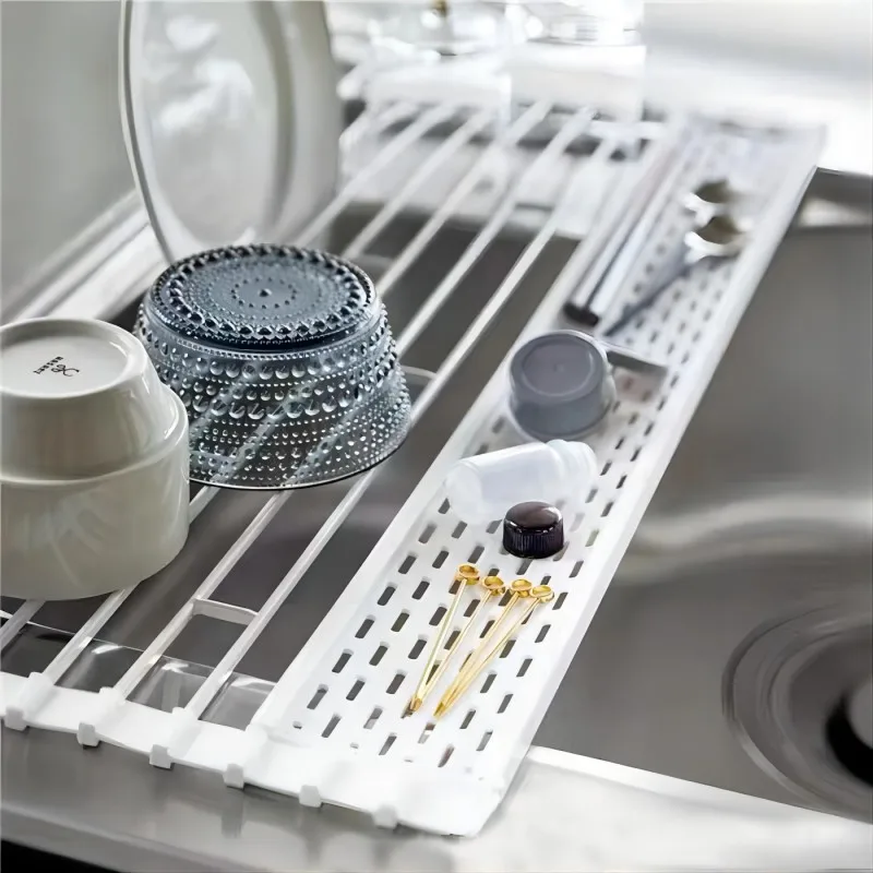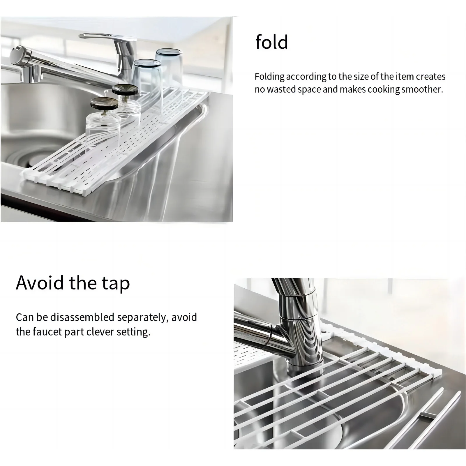 Kitchen Sink Dish Drain Rack Foldableing Roller Blind Flat Drain Storage Rack Spoon Chopsticks Tableware Leaking Storage Rack Large and Small