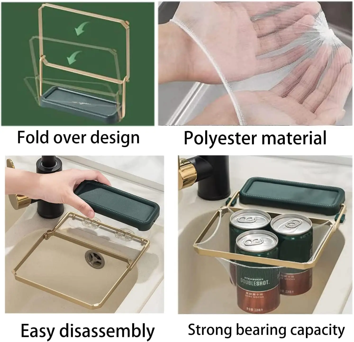 SAVE SPACE ----- Convenient rack is placed on the edge of sink, and is foldable to save space. You can turn the rack upwards when you don’t use it, without occupying any sink space.