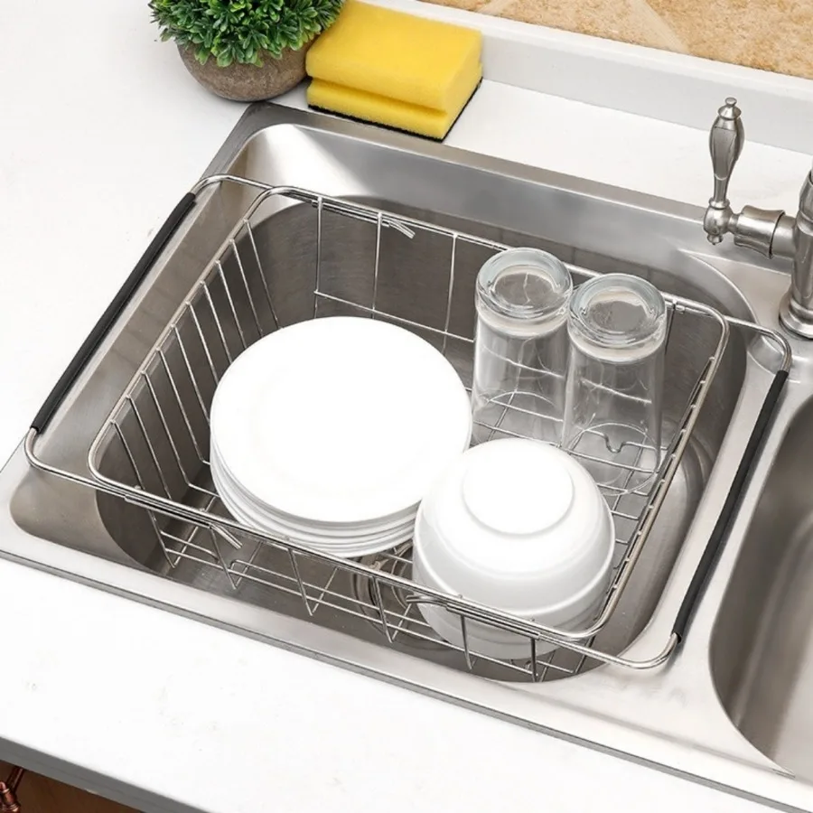 Kitchen Storage Organizer Drying Rack Sink Tray For Plates Bowl Cup Shelf Basket Adjustable Stainless Steel Dish Rack Drainer