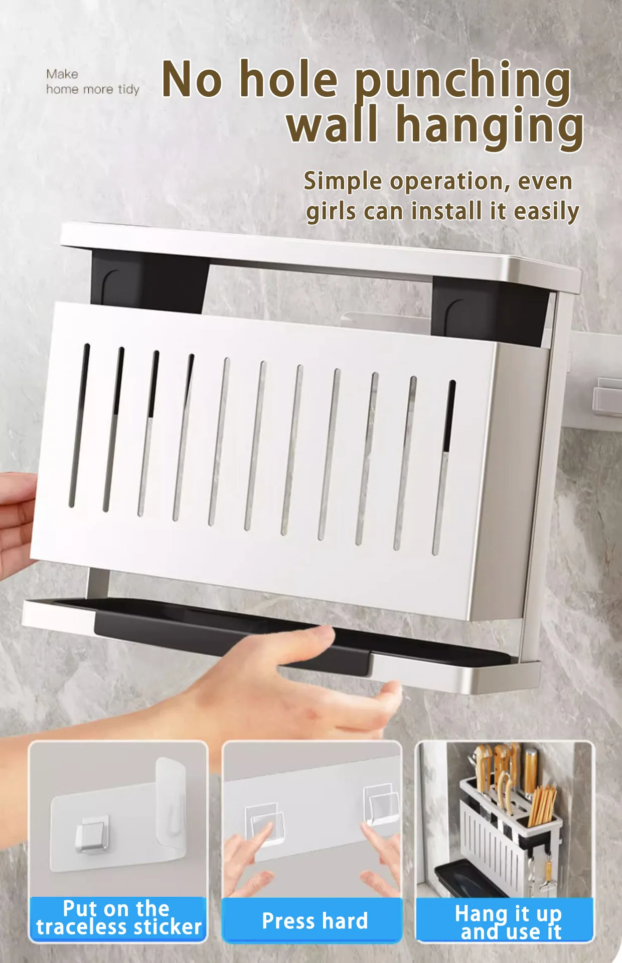Kitchen Storage Rack Wall-Mounted Multifunctional Storage Knife Rack Detachable Stainless Steel With Multiple Brackets And Hooks