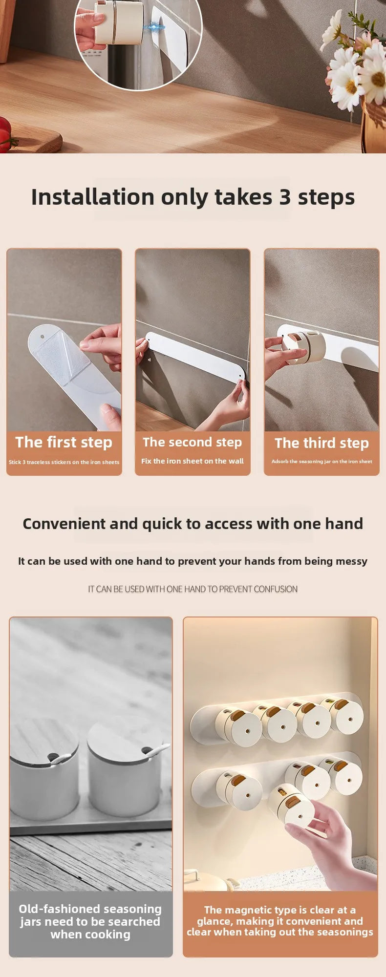Kitchen Supplies Magnetic Spice Jars Set Pepper Seasoning Plastic Spice Tins Storage Jars Tins Sprays Organizer Rack Home
