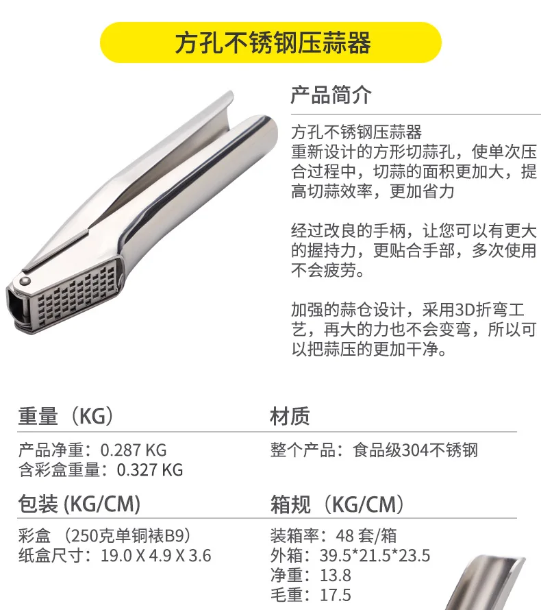 Kitchen supplies stainless steel garlic press garlic masher garlic grinder home manual kitchen ginger