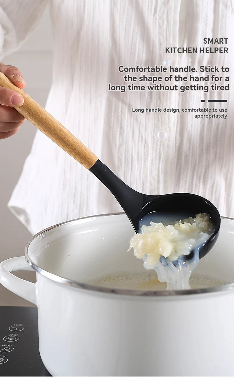 Kitchen Tools Set Wooden Handle Nonstick Pan Food Grade Cooking Silicone Storage Kit Stir Fry Baking Kitchen Set