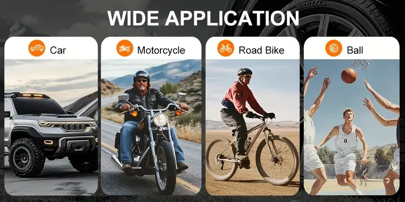 5. One machine for multiple uses, meeting multiple needs: Not only suitable for car tires, but also for inflating bicycles, motorcycles, balls, etc., to meet your various inflation needs.