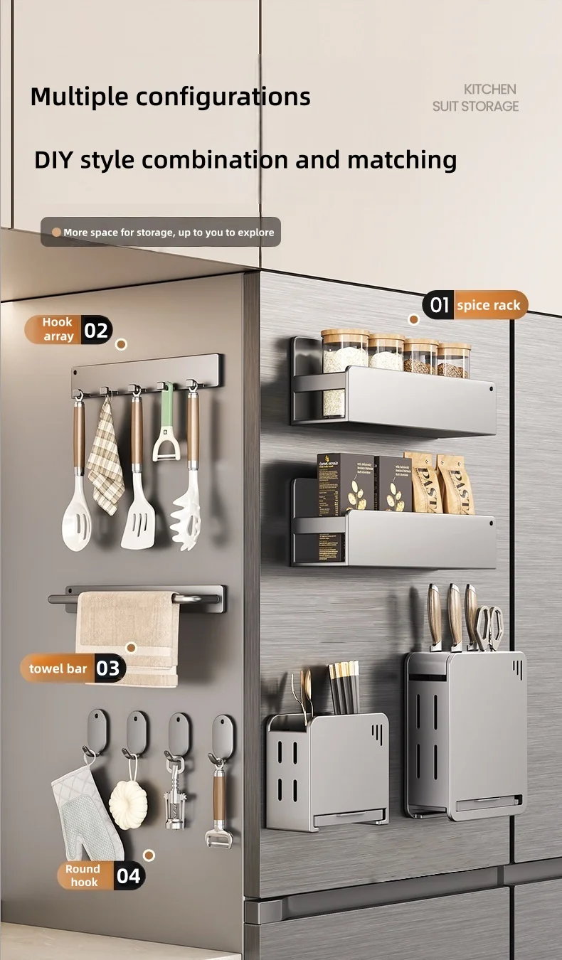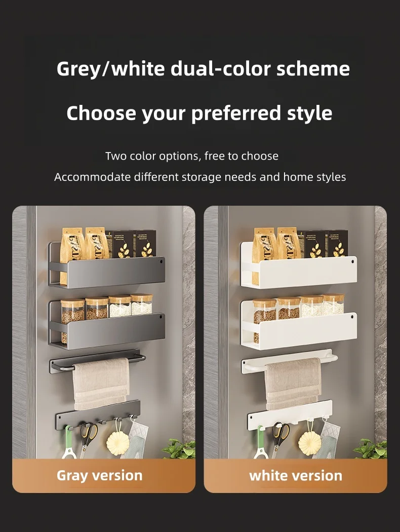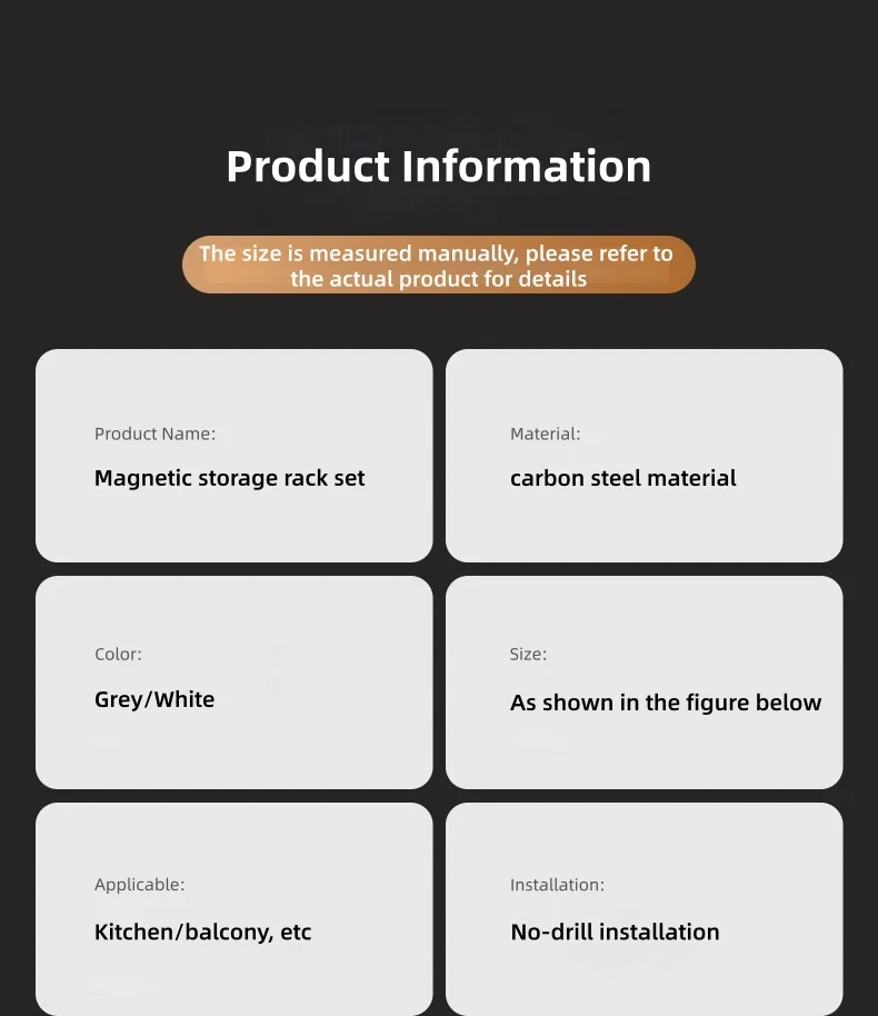 Adjustable magnetic spice rack - carbon steel multi-layer material: sturdy carbon steel with flexible silicon magnets.