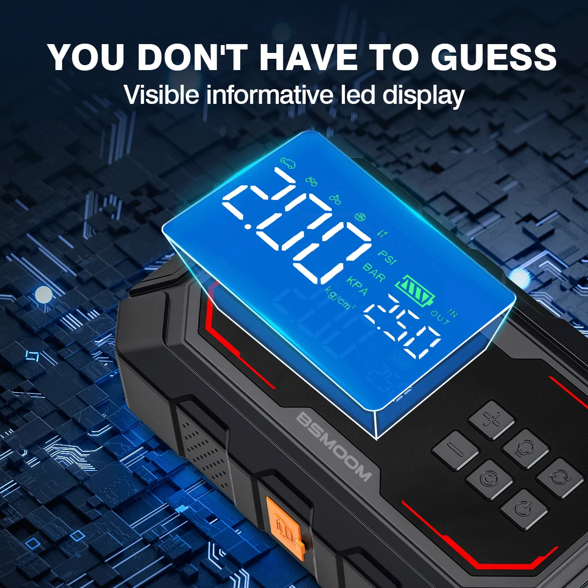 ✅ Compact & Portable - Fits in your glove compartment, eliminating bulky cables and separate pumps.