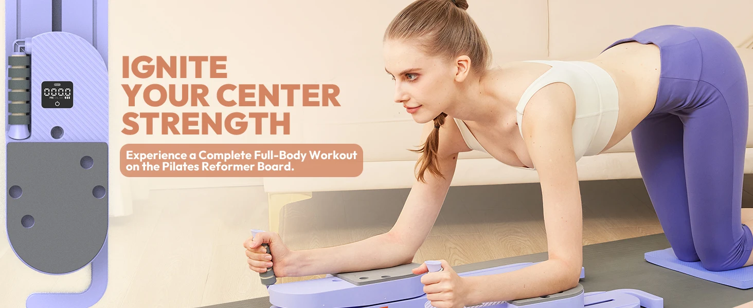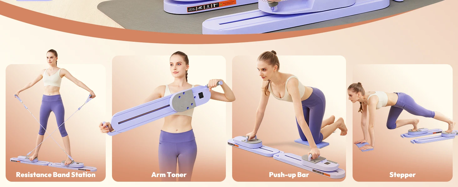 Portable Pilates Board with Resistance Bands – Multi-Functional Full Body Fitness Reformer for Women, Home Workout