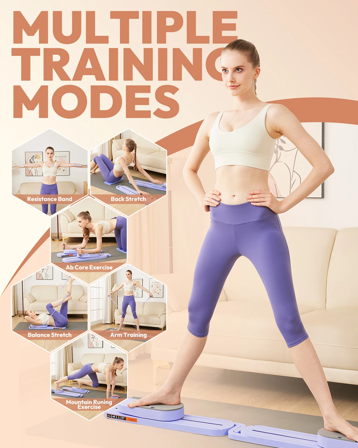 6-in-1 Foldable Pilates Board for Home Workout with Smart Display, Adjustable Split Design & Resistance Bands