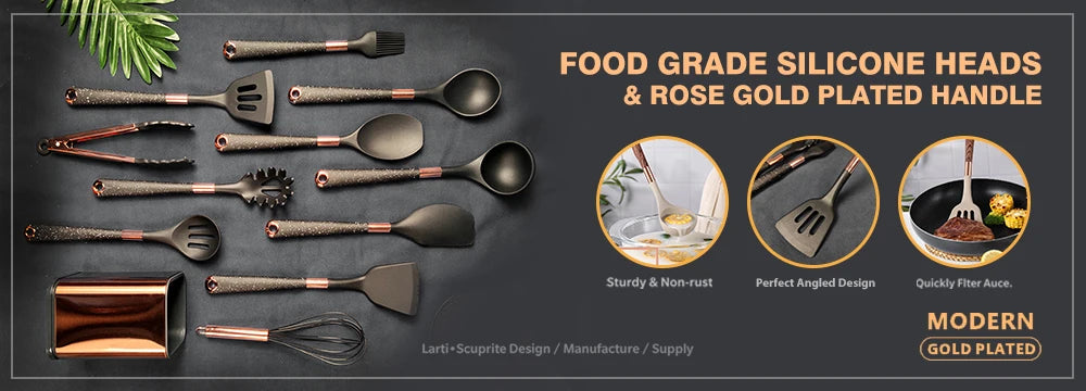 The kitchen utensils set made with food grade silicone material and Stainless Steel.High temperature resistance and non-gumming, won't damage your wok.no odor and eco-friendly, safe to use and easy to clean.