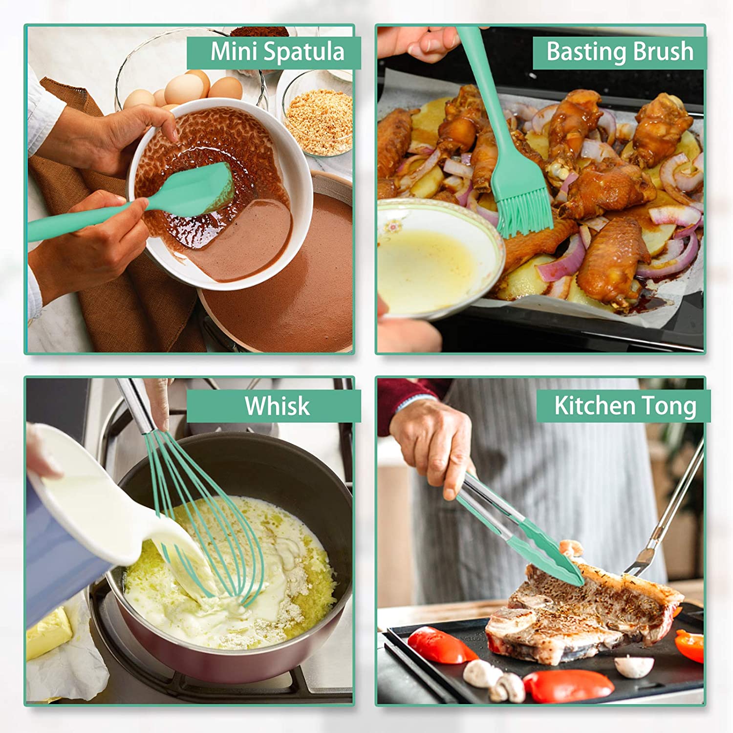 Material : The kitchen cooking utensils set is made of silicone, with it, you can meet your daily baking and cooking needs without having to spend a lot of money to buy each piece of cookware separately.