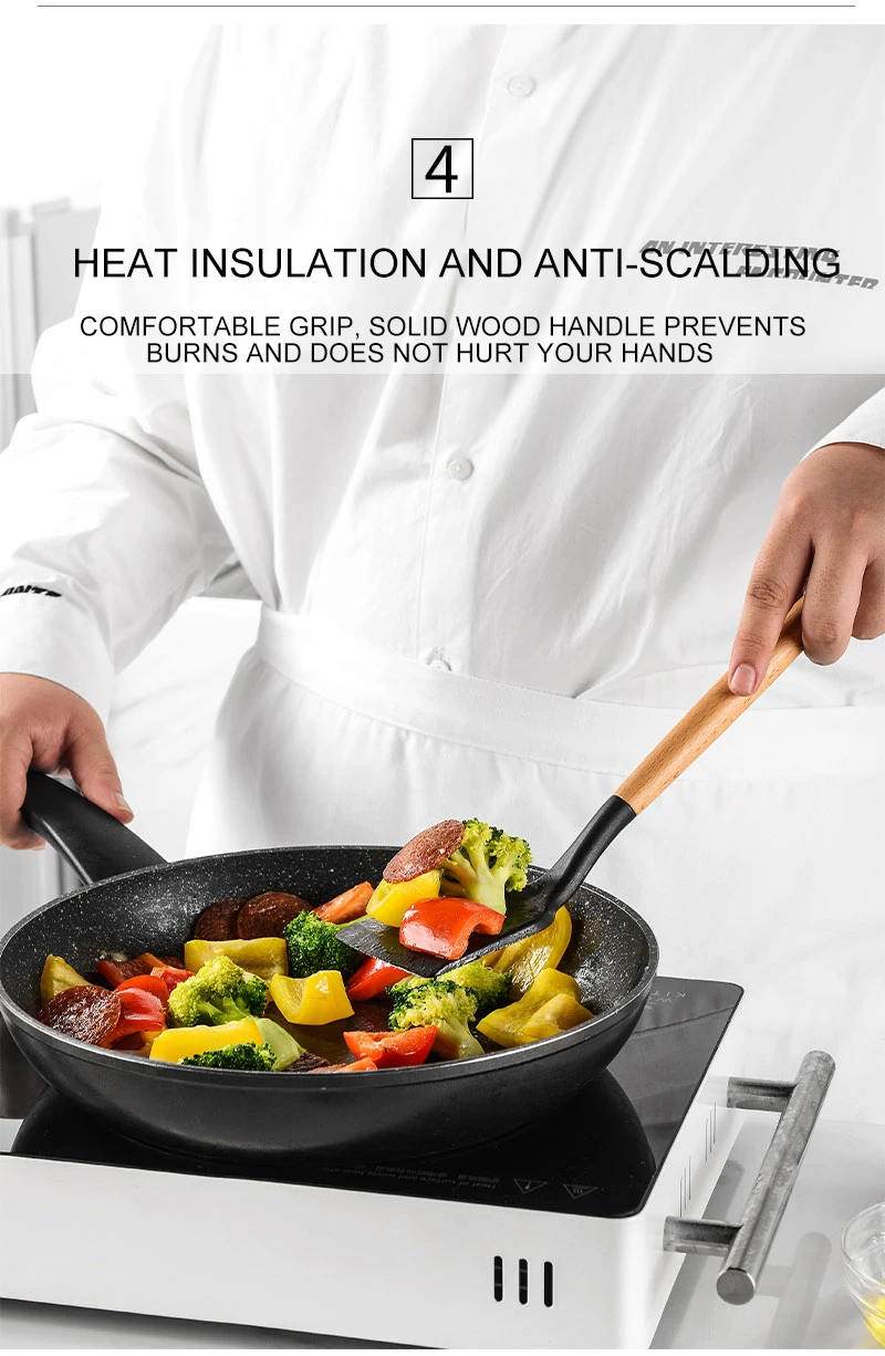 5. Silicone kitchenware with wooden handles cannot be used in dishwashers. After blisters, heat expansion and contraction will be severe.