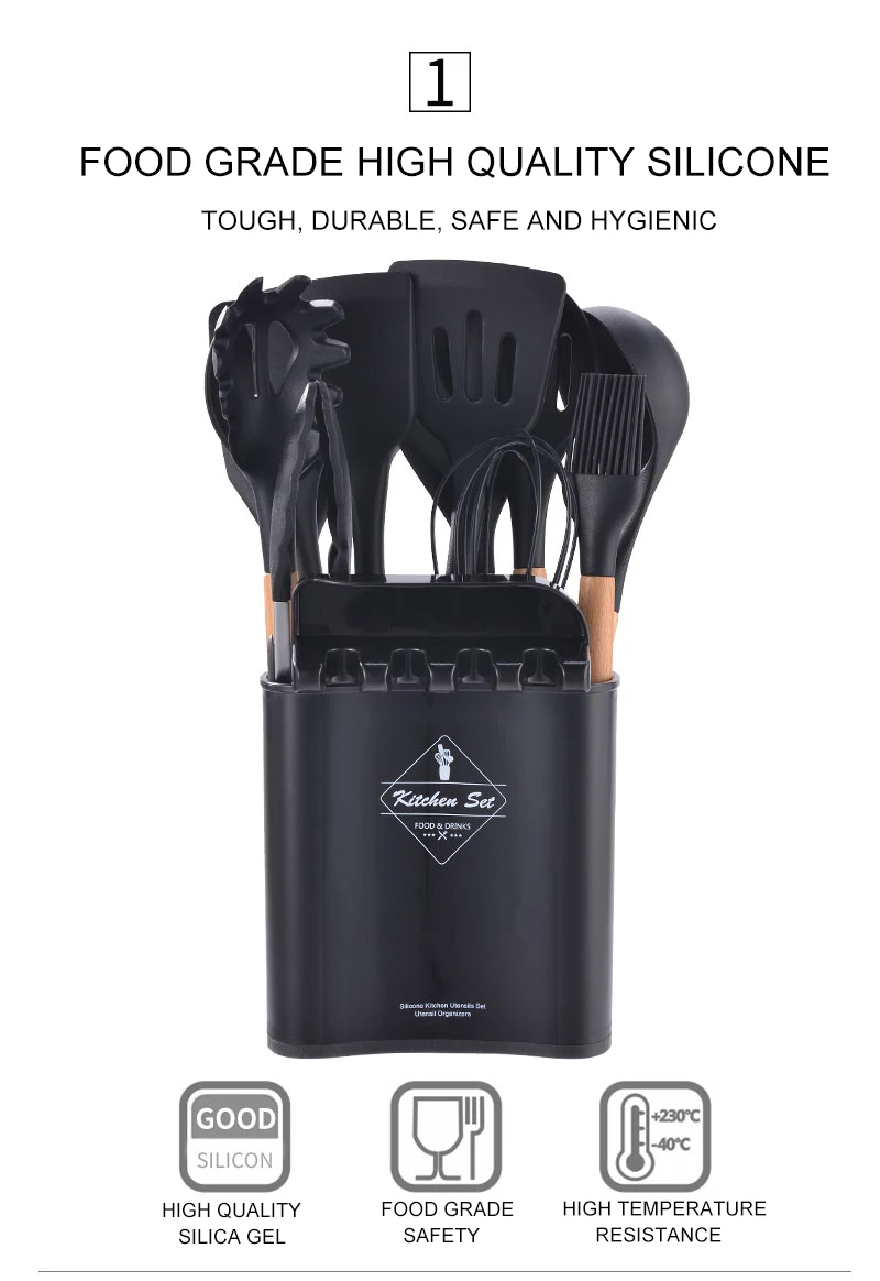 Silicone Kitchen Utensil Set BPA Free Kitchen Cooking Baking Tools Set Kitchen Accessories Gadgets Kitchenware With Container N.