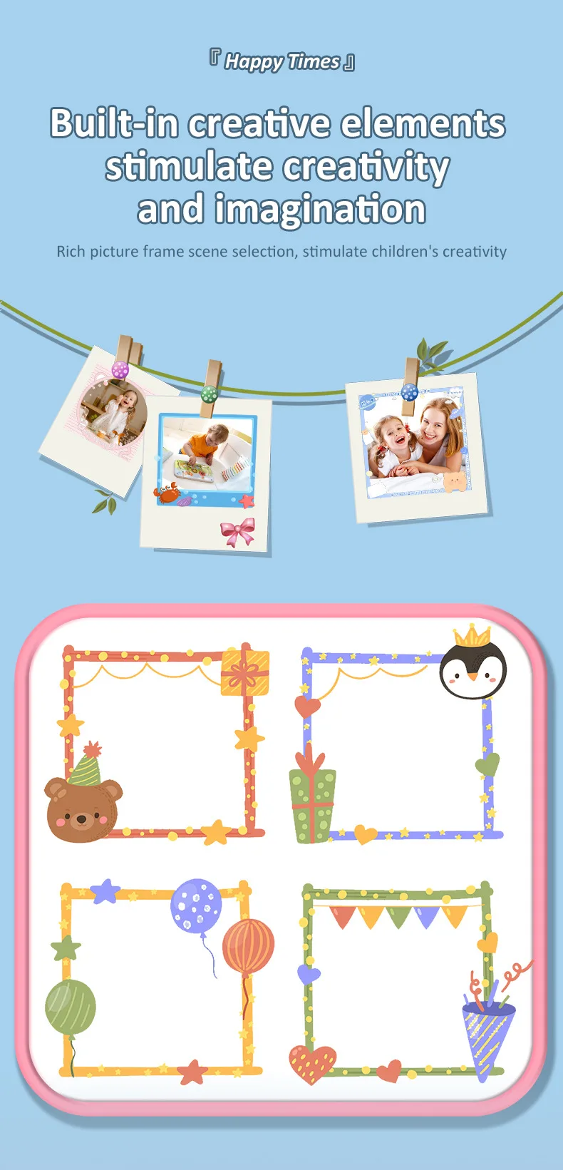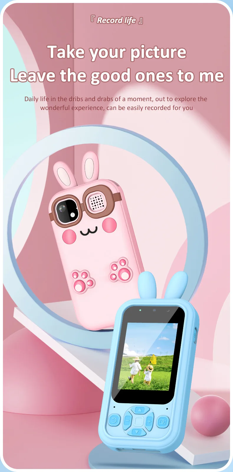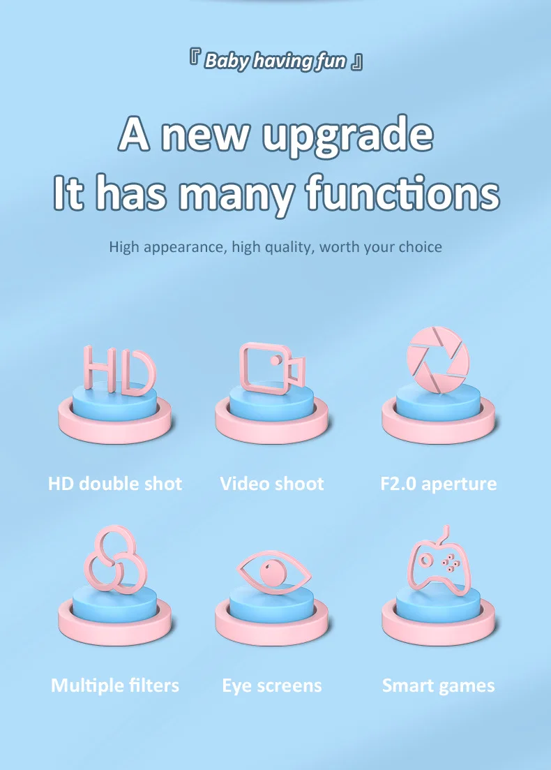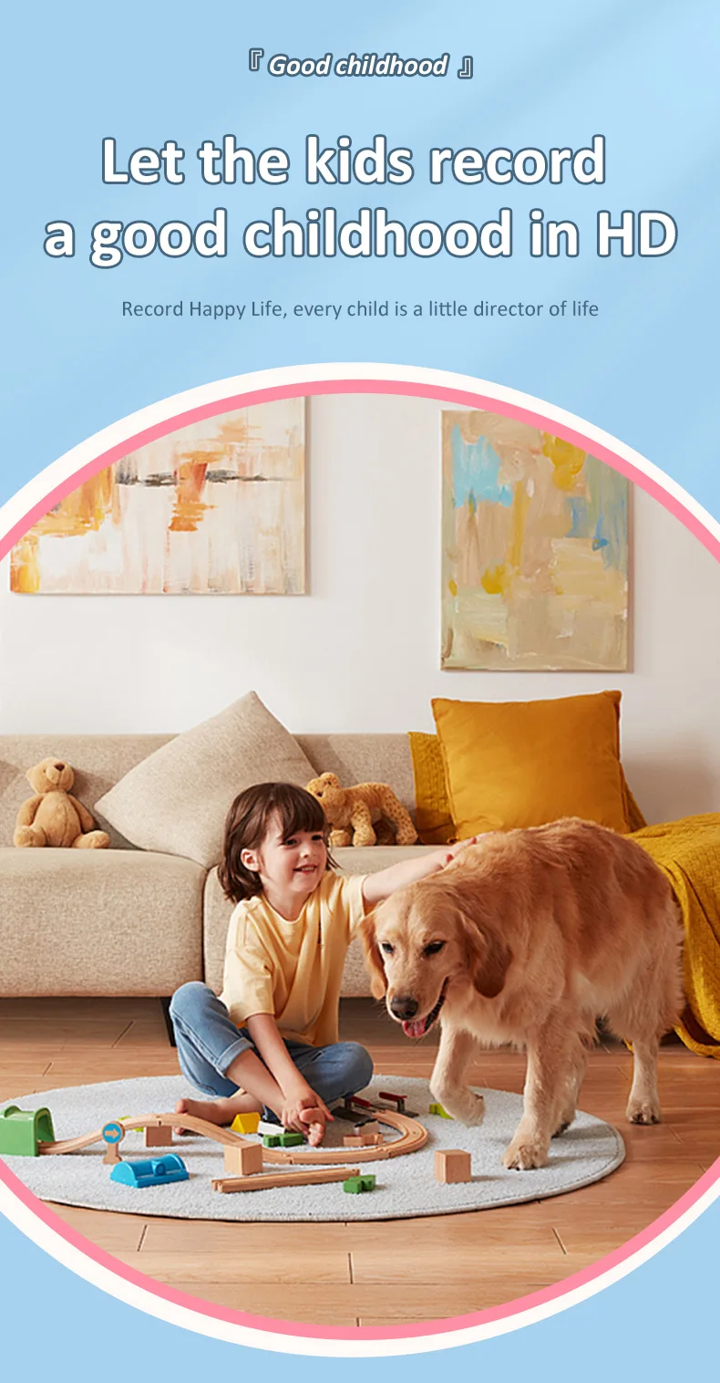 This versatile digital camera for kids features both front and rear lenses for photos & videos, plus fun educational games. Made from safe ABS plastic with a 600mAh rechargeable battery, it includes a lanyard and charging cable. Perfect as a creative, screen-free gift for children ages 3+ to explore photography and play.