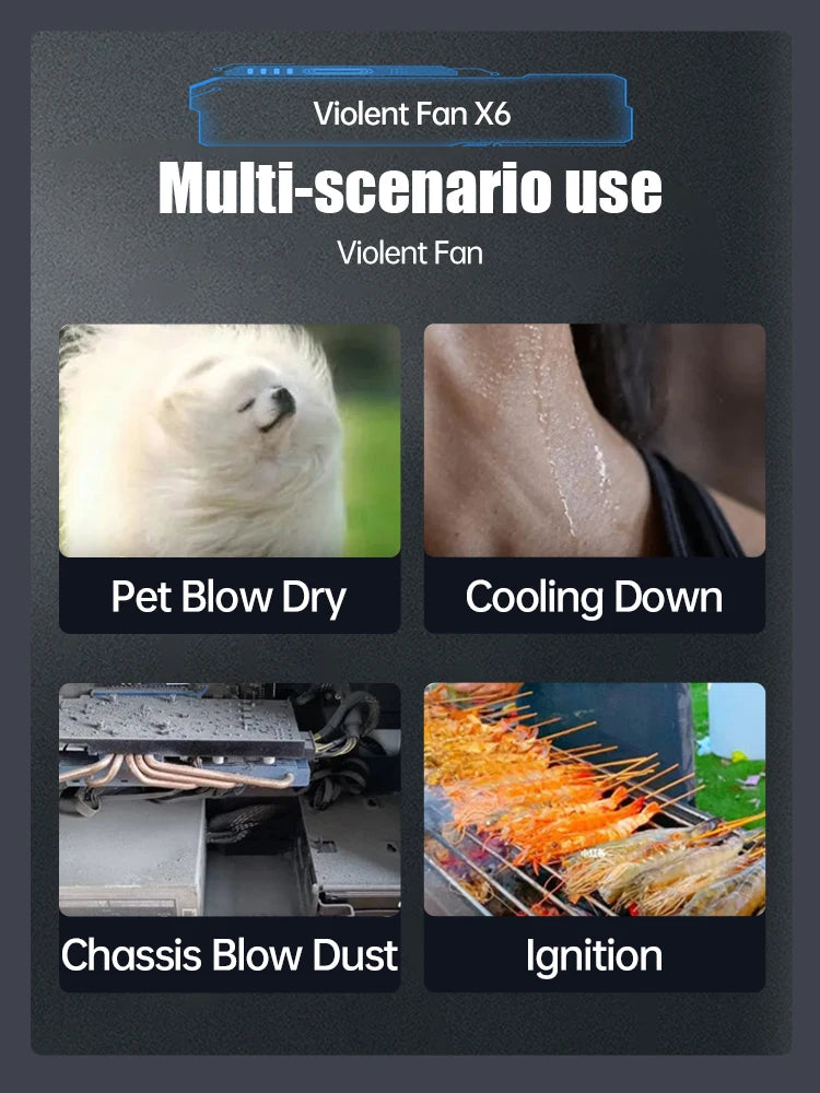 Violent Fan 400000RPM Brushless Turbo Jet Blower – 53m/s Powerful Air Blower & Vacuum Dust Cleaner, Type-C Fast Charging